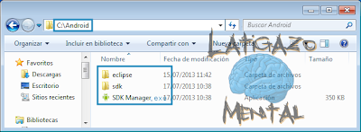 Una vez descargado El paquete SDK + Eclipse, lo descomprimimos en C:\ por ejemplo y lo renombramos si lo creemos conveniente, yo lo renombro a Android.